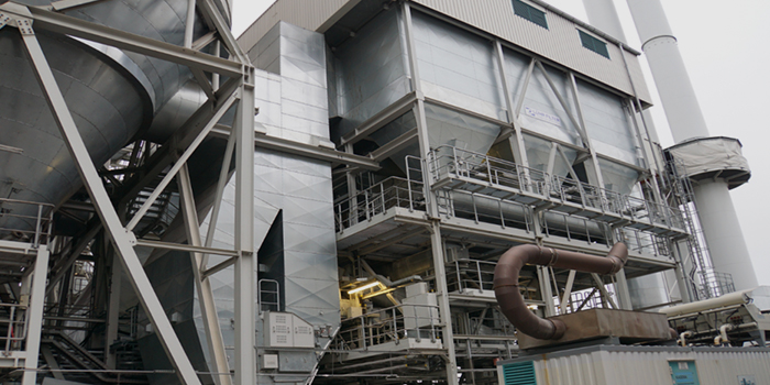 原煙氣經(jīng)進(jìn)風(fēng)煙道導(dǎo)流由頂部旋轉(zhuǎn)向下進(jìn)入反應(yīng)塔,石灰漿液通過霧化盤拖曳剪切成微小顆粒,在顆粒表面的液膜中進(jìn)行傳熱和傳質(zhì),脫除煙氣中的HCl、SO2等酸性物質(zhì)經(jīng)布袋除塵器過濾后排出。