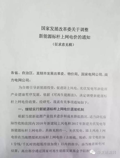 昨天(9月28日),華夏能源網發(fā)布了文章《光伏電價下調“靴子”落地?2017年三類資源區(qū)光伏電價將降至0.85元》(點擊閱讀),結果,今天發(fā)改委就正式出臺了《關于調整新能源標桿上網電價的通知(征求意見稿)》