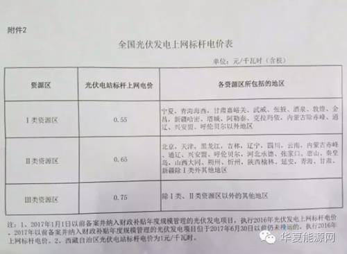 注:1、2017年1月1日以前備案并納入財政補貼年度規(guī)模管理的光伏發(fā)電項目,執(zhí)行2016年光伏發(fā)電上網標桿電價。2017年以前備案并納入財政補貼年度規(guī)模管理的光伏發(fā)電項目但于2017年6月30日以前仍未投運的,執(zhí)行2016年上網標桿電價。2、西藏自治區(qū)光伏電站標桿電價為1元/千瓦時。