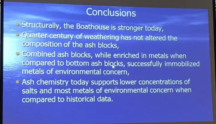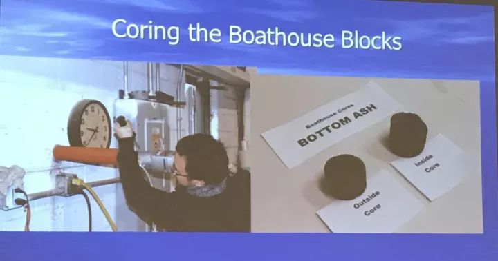 這位教授的演講題目很有趣,叫“船屋”。他講述了自己在年輕時候從垃圾焚燒廠弄回來一些垃圾灰制成的磚,用這些磚制作了一個小房間,這個小房間是用于存放他出去游玩的一艘小船的。為了檢驗(yàn)這些垃圾灰是否對人存在傷害,在這個幾十年中間,這位老教授會定期從墻上取樣分析這些灰的成分變化,并將這些數(shù)據(jù)展現(xiàn)在我們面前。