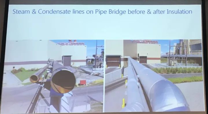 這座焚燒廠投運(yùn)于2014年,裝備精良,做工精湛,其采用了空冷島的設(shè)計(jì)(與我們山西大同項(xiàng)目很相似),尤其是彩瓦的材質(zhì)和施工質(zhì)量充分體現(xiàn)出了一個代表美國最新工藝水平的巔峰之作。對于彩瓦的材質(zhì)選擇和施工監(jiān)督,一直是我們所關(guān)注的重點(diǎn),對彩瓦應(yīng)當(dāng)嚴(yán)格要求采用連續(xù)瓦楞并確保足夠的厚度,才能體現(xiàn)出一個項(xiàng)目的質(zhì)感和品質(zhì),這也是我本人最關(guān)注的環(huán)節(jié)。