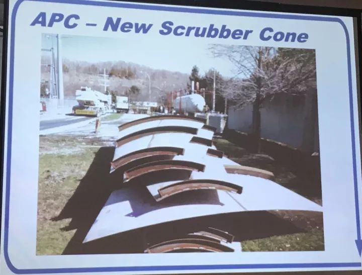 另一位是我們上次去美國參觀的一座焚燒廠的技術(shù)人員介紹了他們的一次最新的維修。這是Covanta旗下的美國紐約州的Onondago焚燒廠,由于我們是從事煙氣凈化系統(tǒng)的,我重點(diǎn)聽了一下他們煙氣區(qū)域的技改。這個廠在我上次去的時候,的確略顯破敗,已經(jīng)持續(xù)運(yùn)行了20來年了。說是技改,其實(shí)主要是對出渣系統(tǒng)、膨脹節(jié)、吸收塔錐體、除塵器灰斗、SNCR、DCS和CEMS的更新??吹竭@里,中國的土豪們是不是覺得老美好土,這么晚才上SNCR。