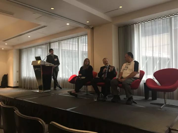 老美的會議形式我覺得比國內(nèi)的會議形式略有不同。通常一個議題由一位大咖發(fā)言,同時會有3-4位大咖就坐一邊,等發(fā)言的大咖結(jié)束后,會共同探討這個話題,坐在一邊的大咖發(fā)言較為簡短,他們也會一起回復(fù)在座聽眾提出的問題。這種形式下,我認(rèn)為其交互性更強(qiáng)一些,而分享的觀點(diǎn)也會持不同的見解,會帶給聽眾更多角度的思考。