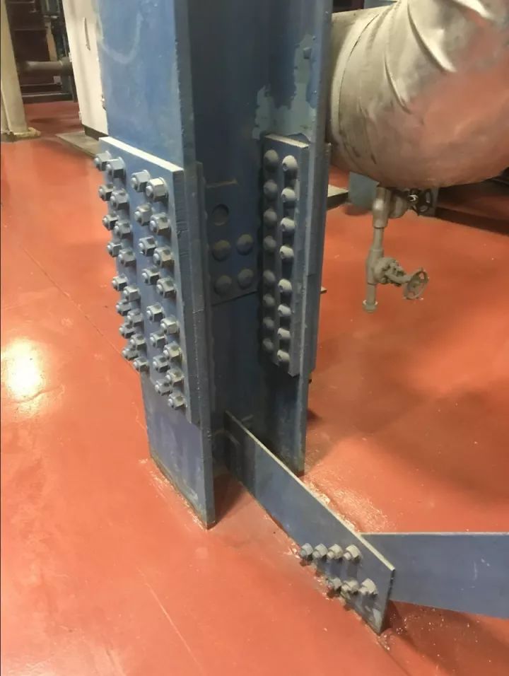 在參觀的閑暇之余,出于對鋼結(jié)構(gòu)的關(guān)心,我們還看了一下他們的結(jié)構(gòu)件的制作質(zhì)量。老美的鋼結(jié)構(gòu)清一色是高強(qiáng)度螺栓連接的高級貨,而我們國內(nèi)大部分煙氣廠商為了控制成本,采用焊接,定位螺栓+焊接的項(xiàng)目則較多。