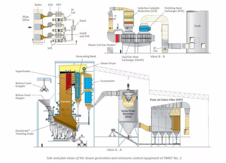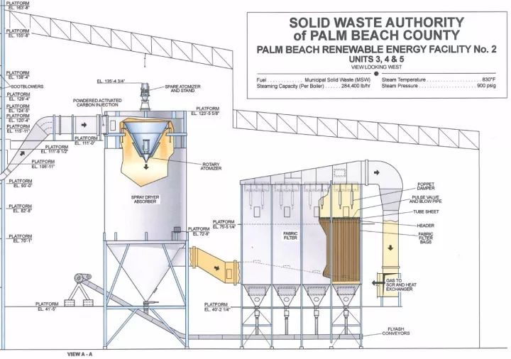 接下來說重點(diǎn),介紹一下這個焚燒廠。全廠為3x1000t/d的偉倫爐排,煙氣工藝采用了SDA+布袋+GGH+SGH+SCR。該廠位于特朗普老家,而且離得不遠(yuǎn),是目前美國最先進(jìn)的焚燒廠,也是第一座采用SCR工藝的焚燒廠,2012年開始建設(shè)至2015年投入商業(yè)運(yùn)行,隸屬于佛羅里達(dá)州海岸縣固廢管理局。