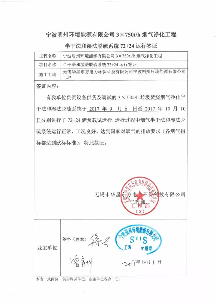 我公司中標(biāo)承建的寧波鄞州3x750t/d爐排爐煙氣凈化工程于2017年10月10日通過72+24小時試運(yùn)行,該工程由寧波明州環(huán)境能源有限公司予以建設(shè),總投資14億元,占地面積124.1畝,設(shè)計(jì)總規(guī)模日處理生活垃圾2250噸。煙氣凈化采用SNCR(氨水)+半干反應(yīng)塔+ 干法(Ca(OH)2)+ 活性炭噴射 + 袋式除塵器 + 蒸汽-煙氣再加熱器(SGH)+ SCR(氨水)+ 濕法(NaOH)+煙氣-煙氣換熱器(GGH)的凈化工藝,為我公司EP項(xiàng)目。