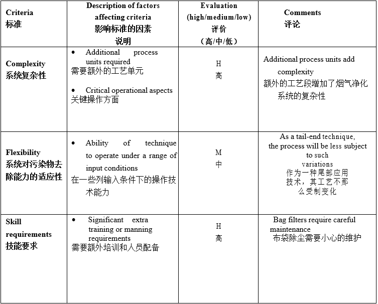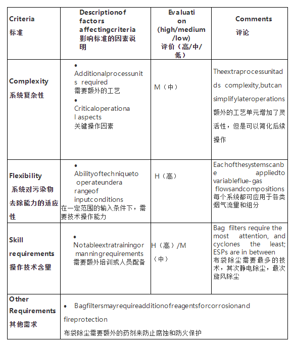 如下列表(不限于)是考慮選擇煙氣凈化工藝需要考慮的因素