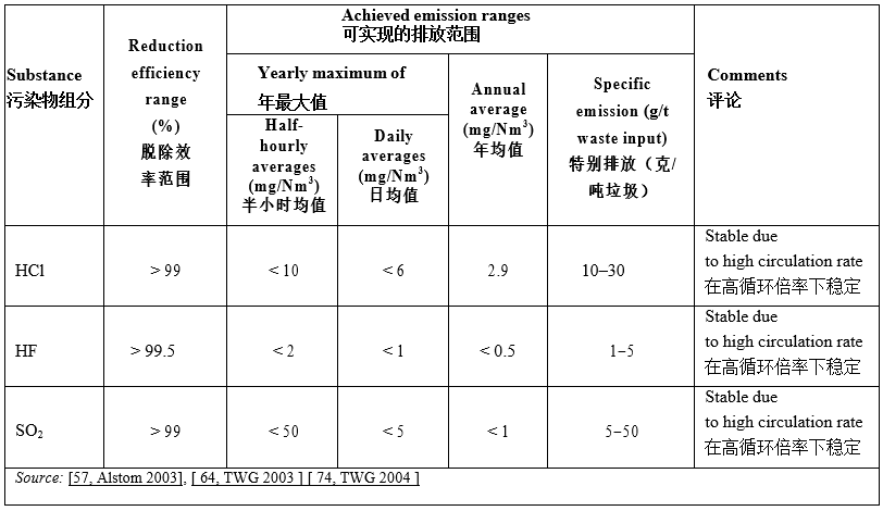 報(bào)告稱該工藝的SO2的去除效率大于98%,HCL的去除率大于99%。