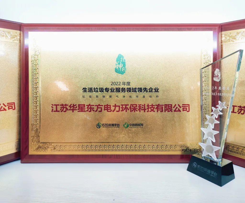 As a professional in the field of flue gas cleaning for municipal waste incineration, Jiangsu Huaxing East was awarded the "Annual Benchmark Enterprise of Flue Gas Cleaning" for the 7th consecutive year in the 2022 evaluation of the E20 Environmental Platform.