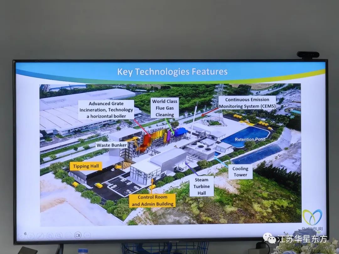 10月27日,華星東方與其他參會嘉賓一起參觀了春武里府清潔能源垃圾發(fā)電廠項目(Chonburi Clean Energy Power Plant (CCE)),該項目由WHA,Veolia, GPSC共同投資建設,總投資18億泰銖(約3.7億RMB),于2019年11月7日投入運營,建設規(guī)模為日處理垃圾320噸,年焚燒垃圾11萬噸,共發(fā)電8.63MW。
