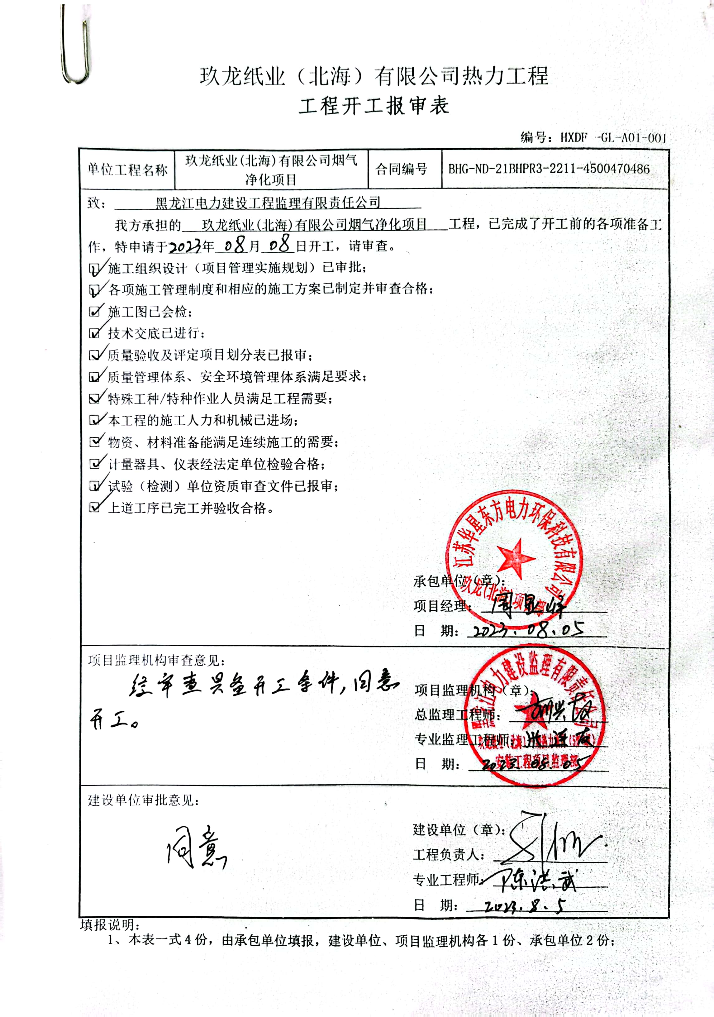 我公司承建的廣西省北海市玖龍紙業(yè)熱力發(fā)電項目煙氣凈化工程于2023年08月08日開工建設。 The flue gas cleaning project of the Jiulong Paper Thermal Power Generation Project in Beihai City, Guangxi Province, undertaken by our company, started construction on August 8, 2023.