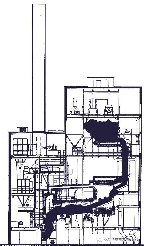 回轉(zhuǎn)窯出口的煙氣大約有1000度左右,通過(guò)巴威的鍋爐來(lái)儲(chǔ)熱,回轉(zhuǎn)窯產(chǎn)生的灰只占到垃圾重量的2%。為了確保尾氣干凈,鍋爐和省煤器裝備了“煙灰袋”(估計(jì)是如今布袋除塵的鼻祖了吧)。在省煤器后,一個(gè)專用的煙氣凈化裝置捕捉了大約80%的飛灰,所以煙囪排放是不是黑煙,固體顆粒物較少。