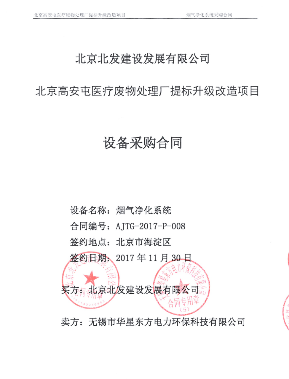 At the end of 2017, Huaxing and its European partner jointly signed the Beijing Gao'antun Medical Waste Project for the first time, taking the lead in establishing the use of the dry-process of "Efficient Turbulent Circulation Deacidification".